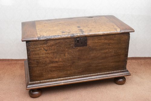 A 15TH CENTURY ENGLISH BOARDED OAK CHEST