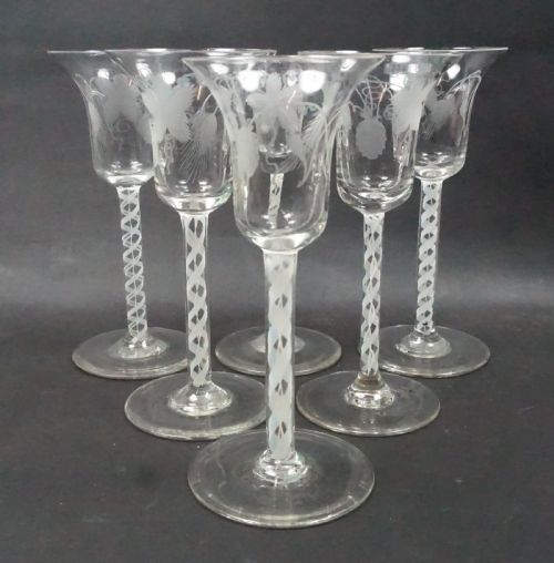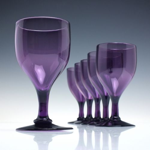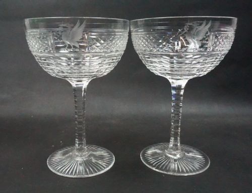 ANTIQUE GLASS CHAMPAGNE GLASSES EIGHT ENGLISH C1880