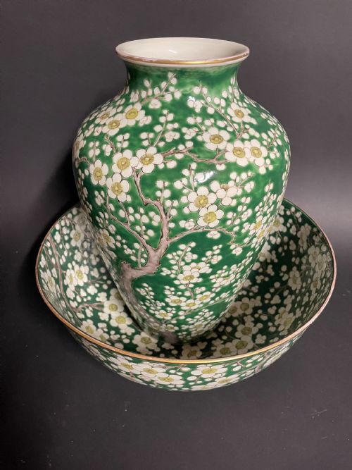 18981902 LOCKE CO WORCESTER VASE WITH BIRD AND FLORAL PAINTED DECORATION