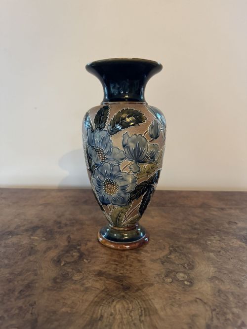 ANTIQUE JAPANESE SATSUMA VASE C1895 NANZAN MARK COBALT AND GILT MORIAGE