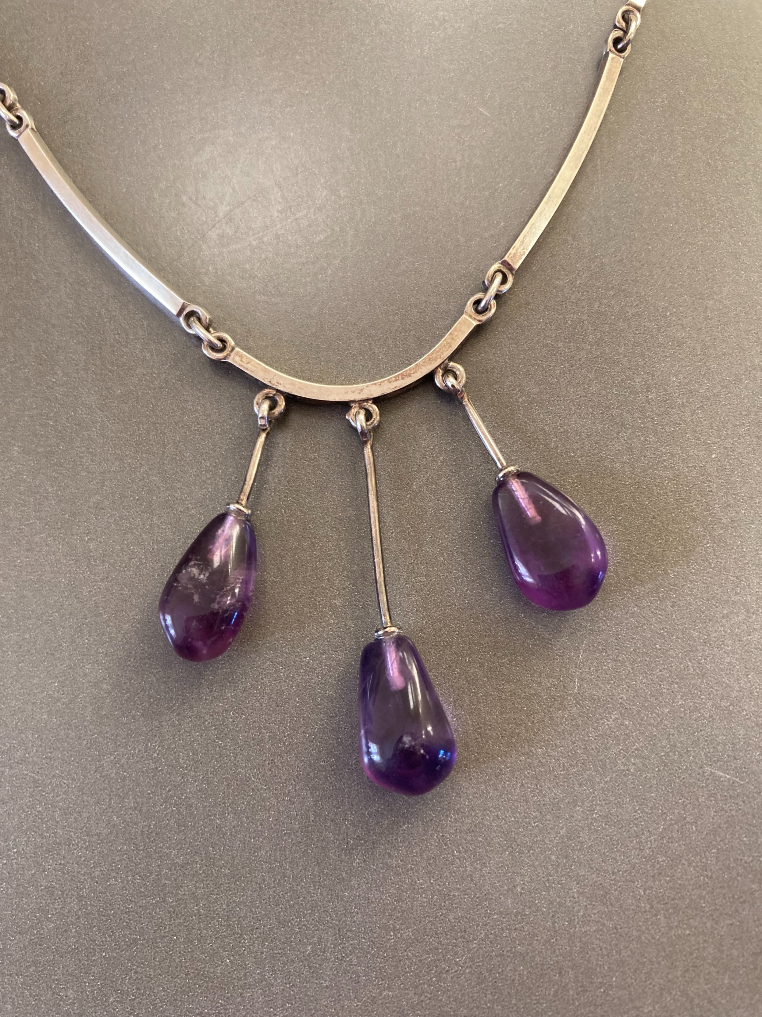 Danish Silver And Amethyst Necklace. 1960s. By Niels Erik From.